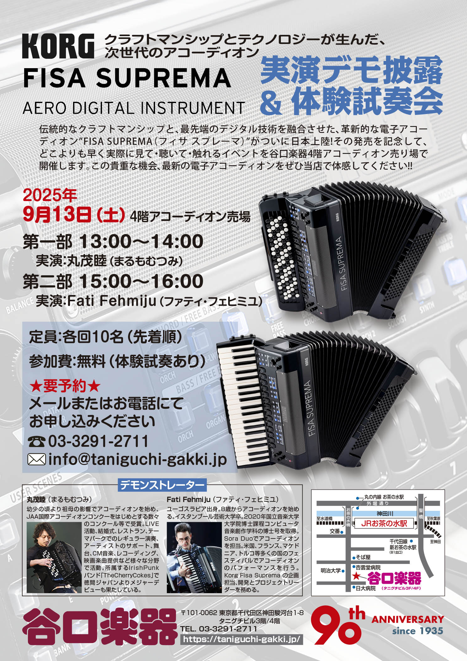 その発売を記念して、どこよりも早く実際に見て・聴いて・触れるイベントを谷口楽器4階アコーディオン売場にて開催します。