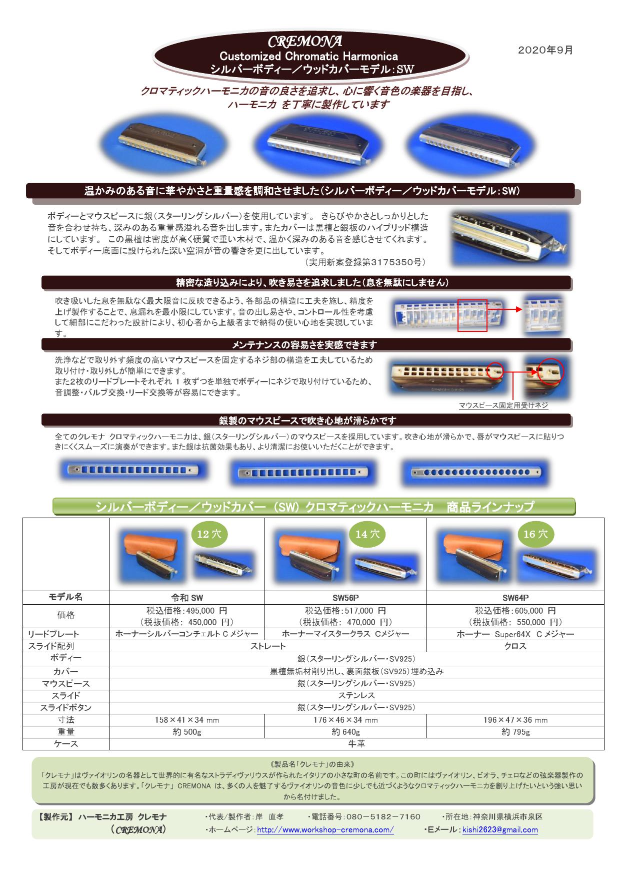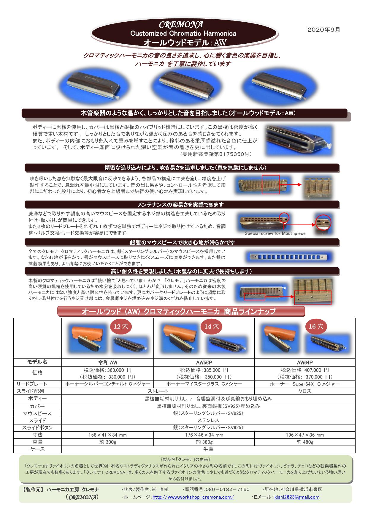 今回は、ハーモニカ工房 CREMONA の岸さまから 新カタログをいただきましたのでご紹介したいと思います。