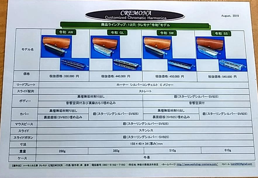 令和モデルは、AW(ボディ、カバーがオールウッド)、GL ゴードン・リーモデル(カバーがシルバー、ボディはウッド)、SW (ボディがシルバー、カバーがウッド)SS(ボディ、カバーが両方シルバー)の4種類あります。