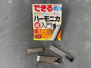 ハーモニカ3種類(テンホールズハーモニカ、クロマチックハーモニカ、複音ハーモニカ)と、大竹英二氏著の”できるゼロからはじめるハーモニカ超入門”のセットになります。