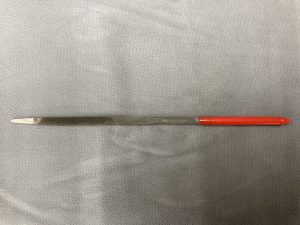 (右から)プラスドライバー、マイナスドライバー、キサゲ、ヤスリ、ヘラ、スパナ