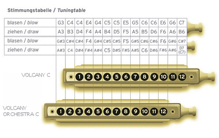 14穴ハーモニカの下から12穴の配列である「ORCHESTRAスケール」がラインナップされています!