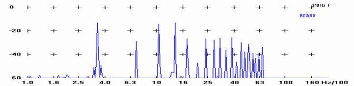 このグラフは、349HzのFを吹いた際にどれだけ倍音が含まれているかということを示すグラフです。