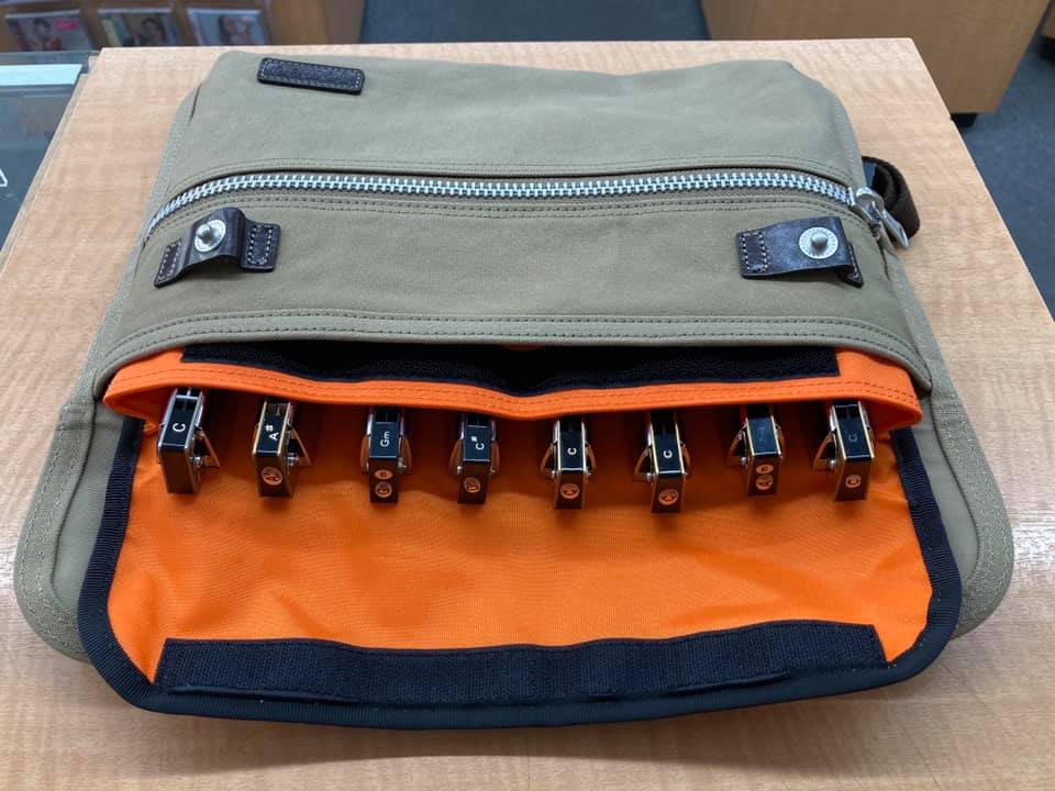 丈夫な生地でできており、タイトな設計ですのでコンパクトにお持ち運びいただけます!中のバッグインバッグは複音ハーモニカ8本収納可能なケースとなっております。