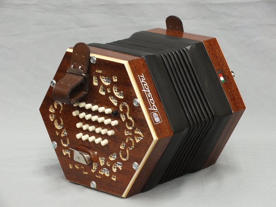 ダイアトニック式(押引異音式)とクロマチック式(押引同音式)があり、ダイアトニック式は“アングロ・コンサーティーナ”、クロマチック式は“イングリッシュ・コンサーティーナ”とも呼ばれ、他にも様々な種類があります。