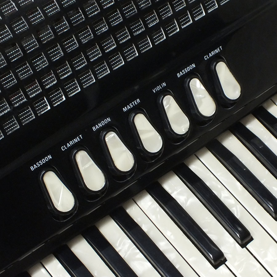 41鍵/120ベース、[M.M.L]の3列笛と、アコーディオンとして標準的なスペックを有しております。