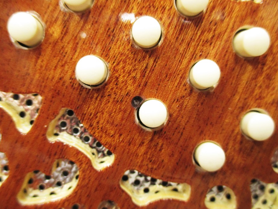 蛇腹の押し引きで同じ音が鳴り、左右交互にボタンを押すことで音が上がって(下がって)いきます。