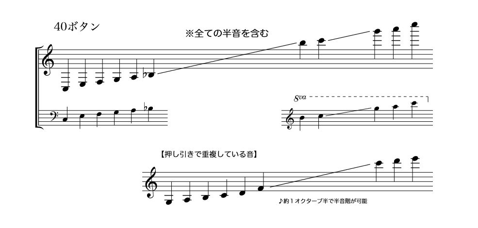 左側が低音域、右側が高音域となっていてアコーディオンの様な使い方も可能。
