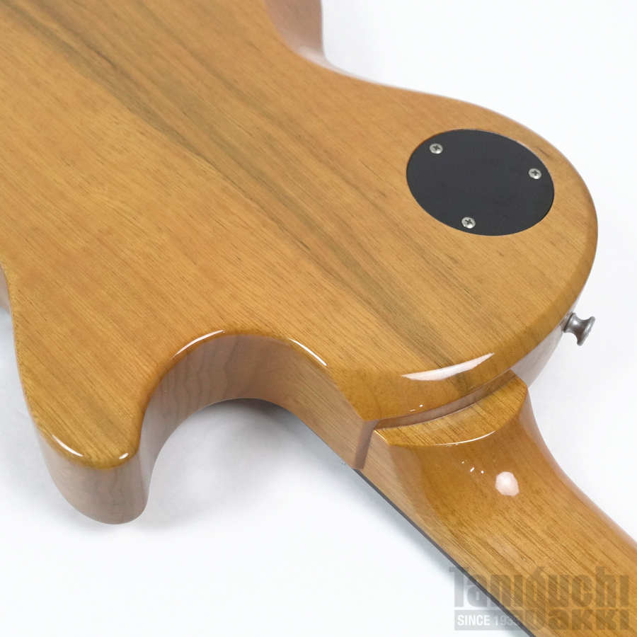 こちらのBurned SPLは、レスポール・スペシャルをBizen Worksならではの視点で再構築したモデル。ボディ&ネックには良質な1ピースのコリーナ(リンバウッド)を使用。コリーナといえば、58年型フライングVのホワイトリンバが一般的ですが、本機にはユニークな杢目の希少材“ブラックリンバ”を採用しています。個体重量は3.28kg!低音はタイトで、中域・高域のヌケも良く、シングルコイルとの相性抜群の1本!!