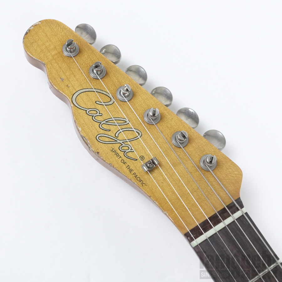 CalJaのサウンドを生み出す重要なファクターのひとつ、クォーターソーン・メイプル(柾目材)ネック。グリップはやや丸みと厚みを持たせたCシェイプ。頼もしく武骨でありながら太さを感じさせないシェイプは、弾きごたえのあるワイルドなトーンにも影響していると云えます。ナット幅は41mm。フィンガーボードはスラブボードのローズウッドを採用。