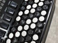 ボタンアコーディオンはピアノ(鍵盤)式よりも各音のボタンが密集しているので、コンパクトでも広い音域をカバーできます。