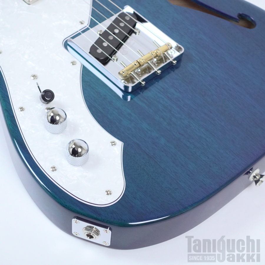 本機はスウィートなトーンが持ち味のセミホロウ(マホガニー)ボディを、鮮やかなトランスペアレント・ブルーで仕上げたモデルとなります。