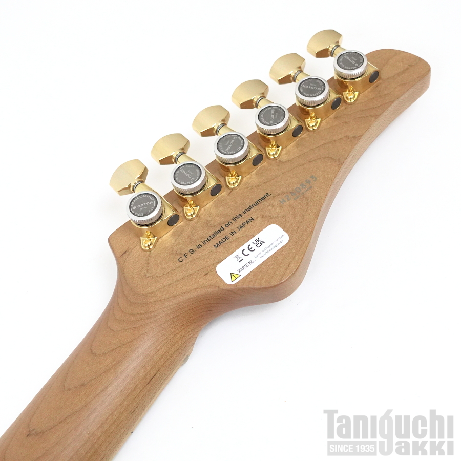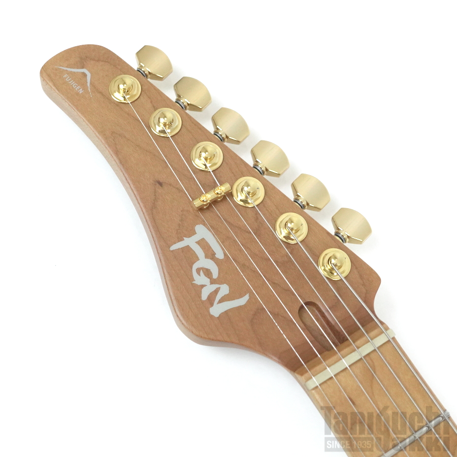 フレットは通常モデルのナロー・トール(ニッケル)とは異なるジャンボ・サイズ(ステンレス)にコンバート。フジゲン製品ではお馴染みの C.F.S (サークル・フレッティング・システム)、250~350mmに変化する Compound Radiusも標準採用。指板サイドはクラフトマンのハンドメイド仕上げによるフレットエッジ処理が施されており、フィット感のある滑かなグリップを実現。サイドポジションには蓄光素材ルミンレイが埋め込まれています。