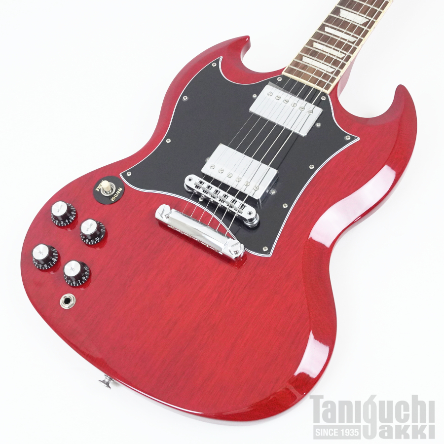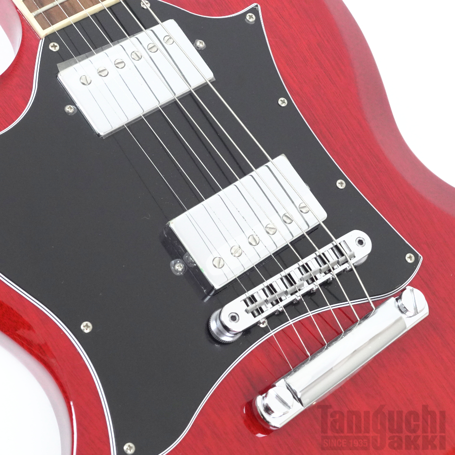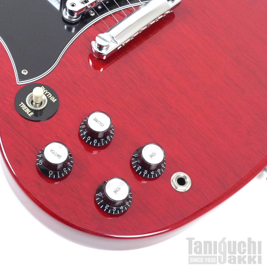 Les Paul (レスポール)モデル生産完了後、シングルカッタウエイからダブルカッタウエイにボディ形状が変更され、まったく新しいデザインのソリッドギターとして 1961年に発表されたSG。本機は66年後期にマイナーチェンジが施されたラージガードを受け継ぐモデルとなっております。