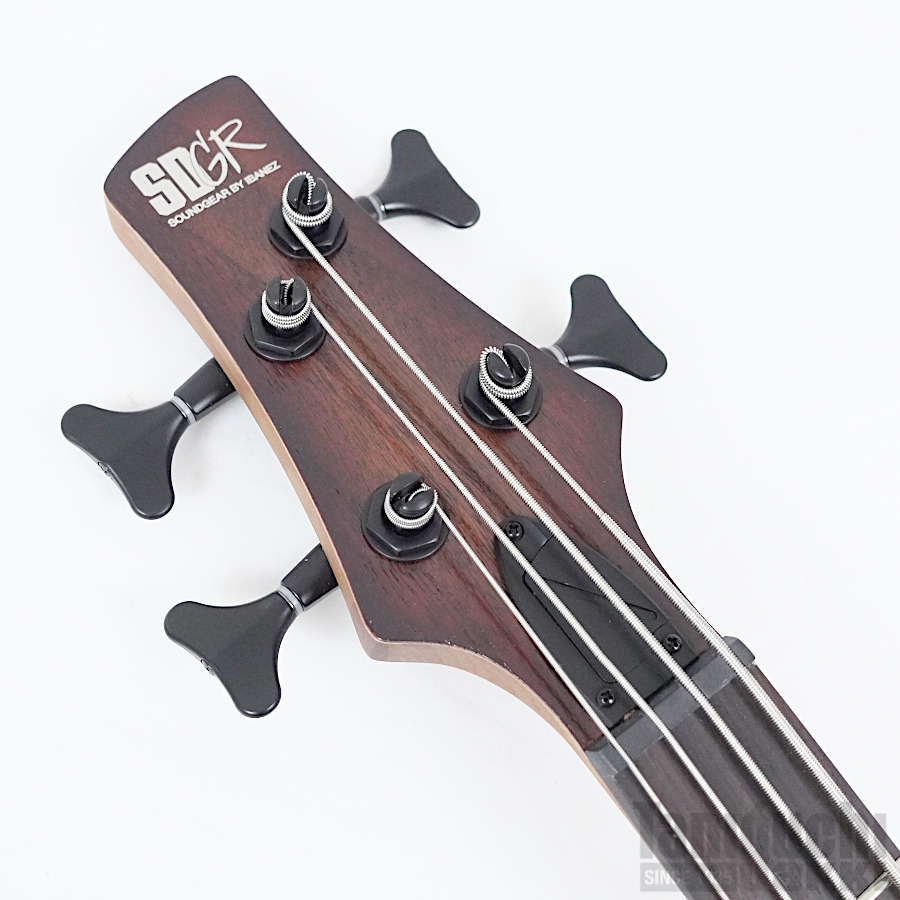 コンパクトな3次元アー チド・ボディによる抜群のフィット感、 スリムなネックによる高いプレイアビ リティ、 多彩なサウンドをアイデンティ ティとして、1987年に誕生した SoundGear "SR"。発売から30年以上を経た現在においても多くのベーシストから高い評価を得ており、Ibanezベースの代名詞として 初心者から上級者まで幅広いレベル層に応じたラインナップが展開されています。
