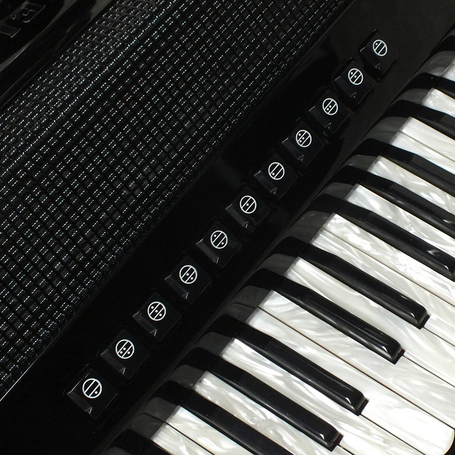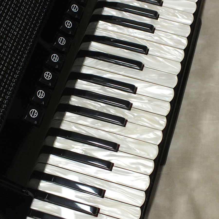 ベース部には6セットのリードを装備し、より重厚なサウンドを可能にしています。 前面から音が出る構造、高い技術を駆使してアクション全体に無雑音システムを採用。 日本を代表するアコーディオン奏者、故・横森良造氏使用モデルです。