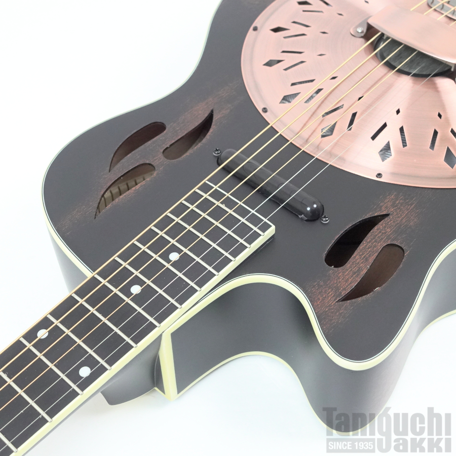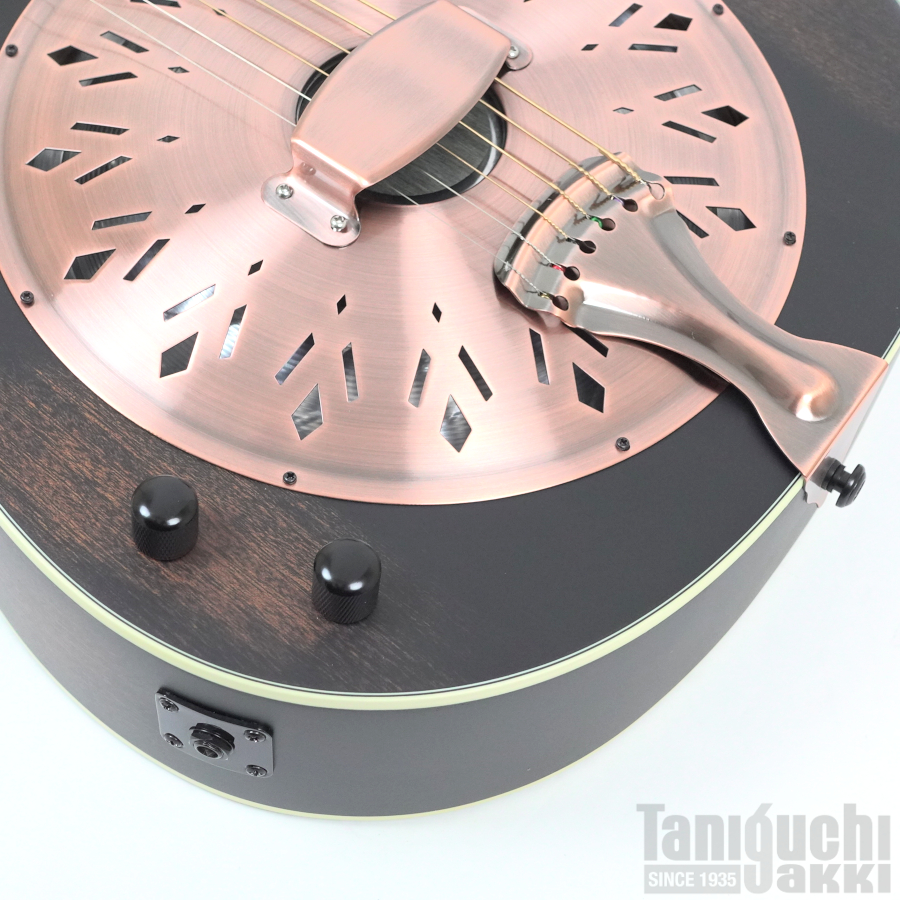 マホガニーのカッタウェイ・ボディに、アルミニウム製リゾネーター・コーンをマウント。細めのネックに628 mmスケールを備え、ナット幅は一般的なアコースティックギター相当の43mmに設定。Lipstick (リップスティック)ピックアップも搭載ており、アンプ出力にも対応いたします。