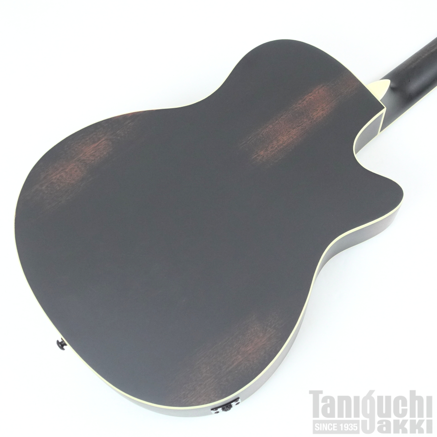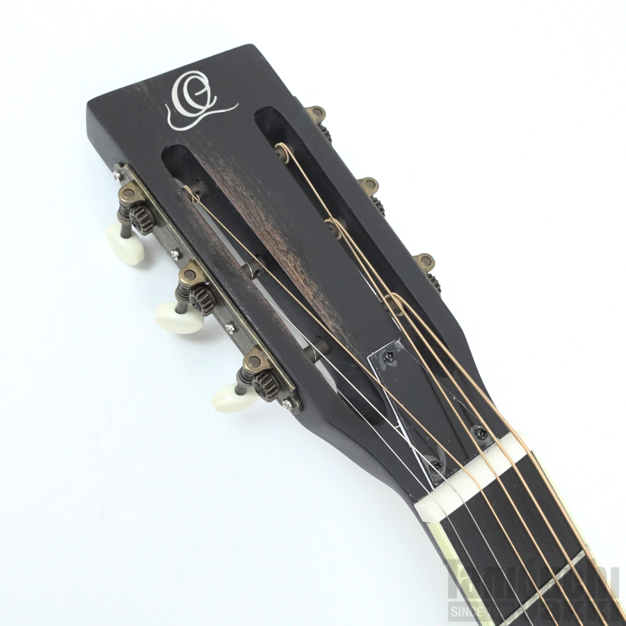 木部には“やれた雰囲気”を出すために、所々色ムラができるような仕上げのDistressed Satin Blackフィニッシュを施し、リゾネーター部にはブラックコッパーのアンティーク風フィニッシュを採用。ショルダーのホールデザインもOrtegaならでは。いなたいルックスにモダンなエレクトロニクスを融合させたシリーズのコンセプトを体現しています。