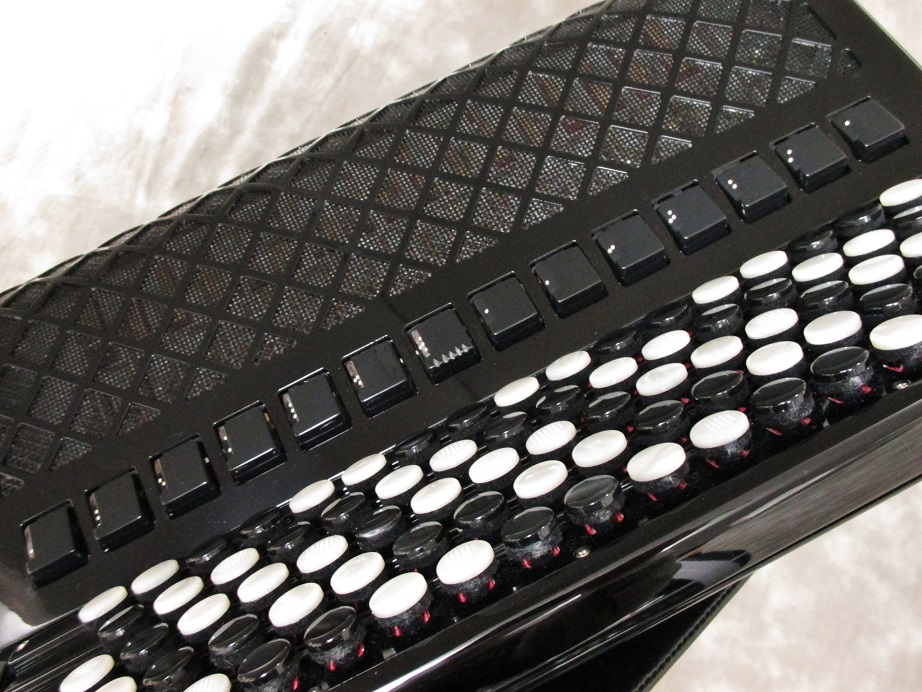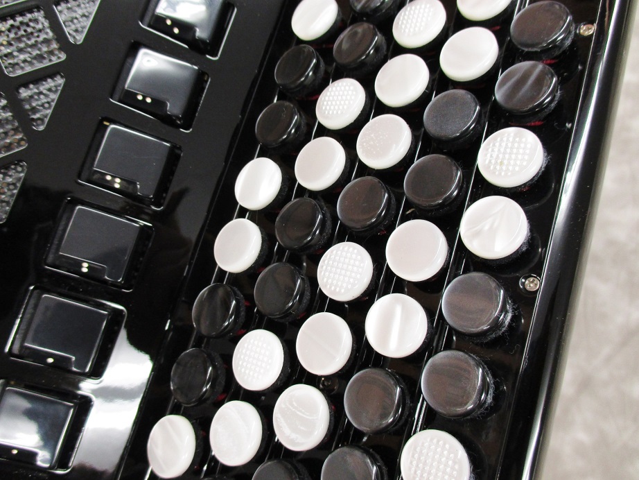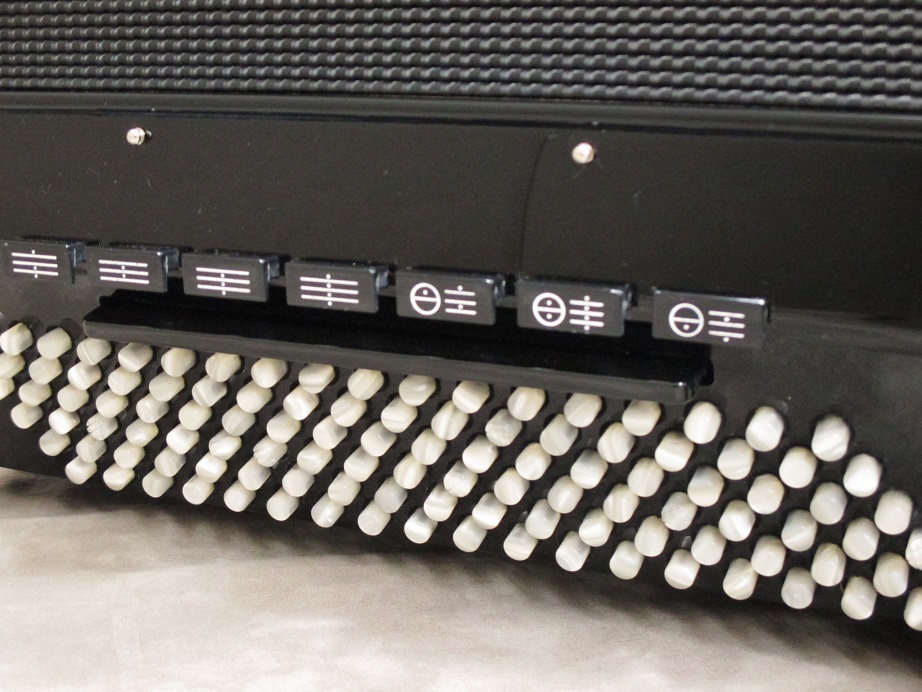 左手の操作において、一般的なアコーディオンのようにコードとベースからなる“スタンダード・ベース(ストラデラ・ベース)”と、クロマチック・アコーディオン(ボタン式)の右手部分と左右対称の配列で単音を出せる“フリーベース”をスイッチひとつで切り替えられる『コンバーター・システム』を備えているモデルです。 フリーベースは主にクラシック音楽に有利になり、例えばバッハなどのポリフォニー(多声音楽)をアコーディオンで正確に演奏することが可能になります。 また、ピアノ曲を編曲することなくそのままの楽譜で演奏することもでき、クラシック音楽のみならずジャズ等あらゆるジャンルで演奏の自由度が増します。 ボタン式コンバーターモデルは音の配列が左右対称である“フリーベース”をより身近に楽しめます。