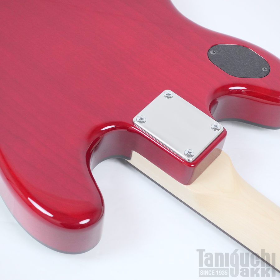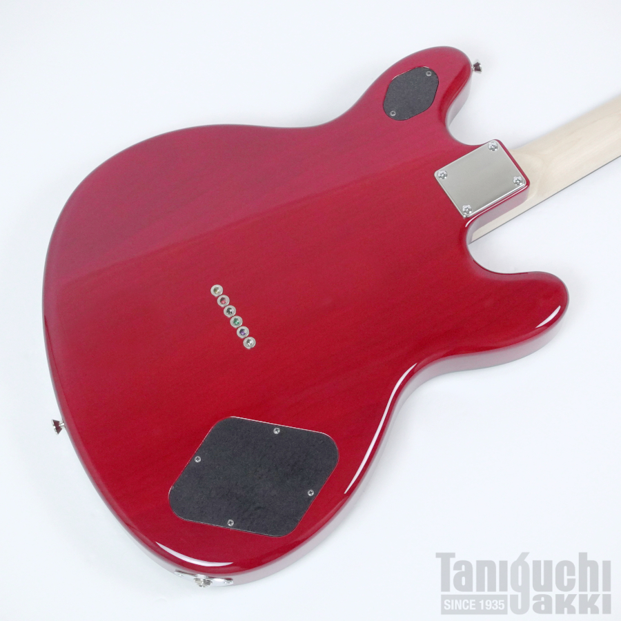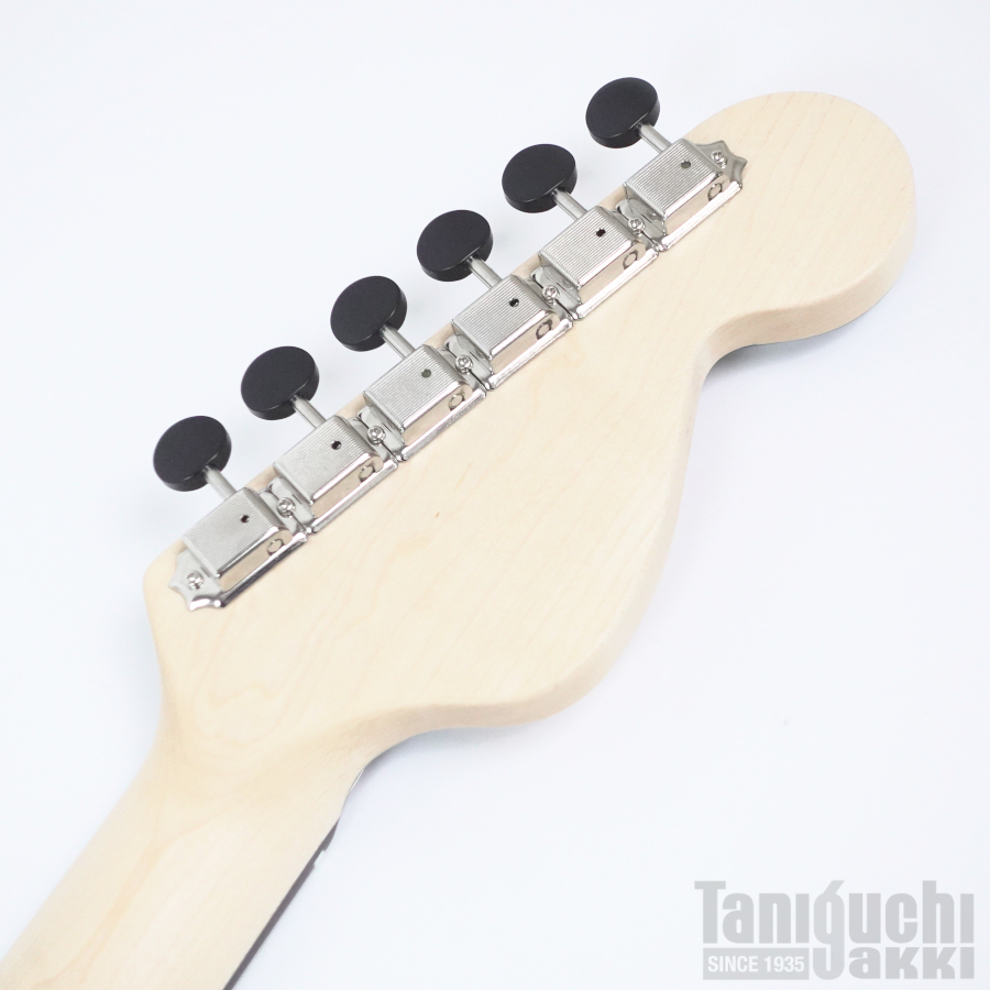 センターブロックを備えたアルダーボディ、ボルトオンのメイプル・ネック、ローズウッド指板を基本に、Standard-T、Psychomasterと同じく、ロングスケール(25.5インチ)、300Rの指板ラディアス、特注のGOTOH製サイドホール・ペグを採用。ブリッジは、Rhythmcaster (リズムキャスター)用にカスタマイズが施されたプレートにブラスサドルをインストール。ボディ裏には、容易にアッセンブリー修理が行えるようバックキャビティを確保。ハコモノの煩わしさを解消したメンテナンス性に優れた仕様となっております。