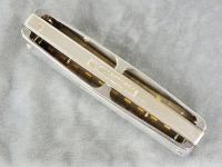 『F-20J』はスズキ10ホールズで唯一、“純正律”で調律したモデル。 ハーモニカの特長は和音での演奏ができることにあります。 そしてこの和音は純正律に調律することで、より濁りの無い美しい響きとなります。 昔の10ホールズはこの純正律が用いられており、今でも伝統的なブルース奏者は純正律モデルを使用することが多いです。