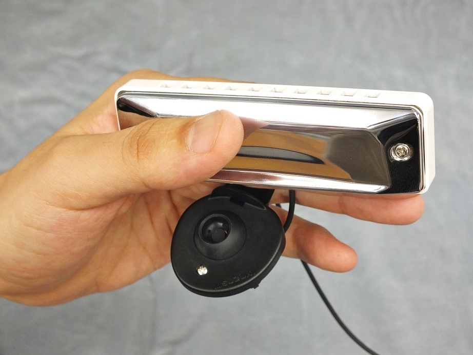 ・両手の空いた状態にて演奏をする場合(タイピン型ホルダー)  両手を自由に使いたい時に有効でハーモニカを演奏中に持ち替える時にも対応できます。  3種類の使用方法の中でも最も自然な音質が得られます。 ・マイクを手に持って演奏する場合(アイボール型ホルダー)  狙った範囲を安定して集中的に集音することが可能です。  大きな音量・太い音質を得られ、ドライブ感のある演奏に向く音質です。 ・指にマイクを保持させて演奏する場合(フィンガーベルト+タイピン型ホルダー)  フィンガーベルトを使用することにより、マイクを落とす心配がなくなります。  ハンドカバー奏法、ハンドワウ奏法など手を使った表現方法を取り入れた演奏スタイルに適しています。