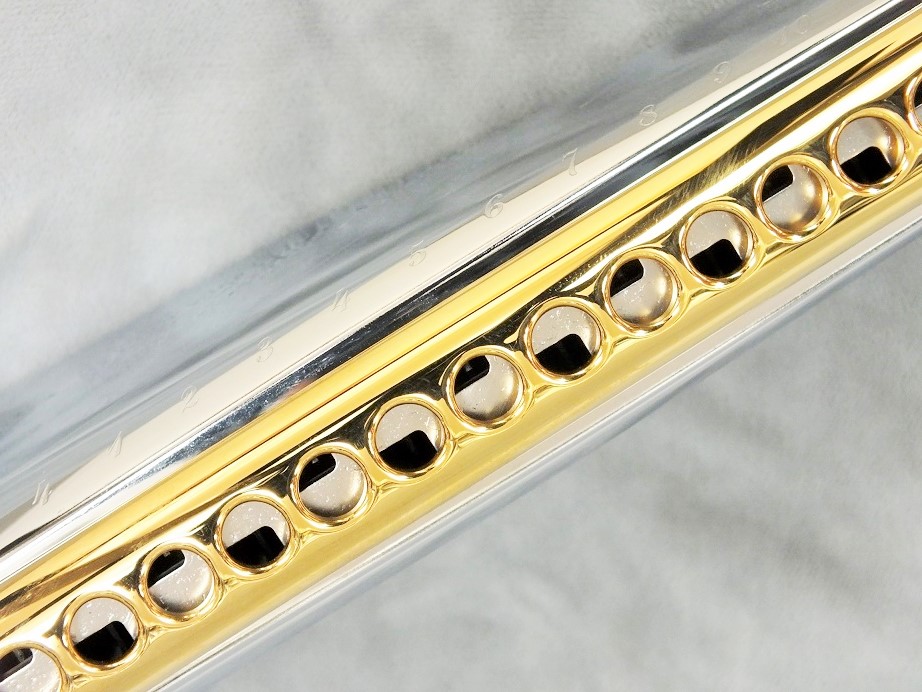 音配列等は従来のクロマチックハーモニカと同様ですが、息のコントロールなどの演奏法はこのモデル独自のものがあります。