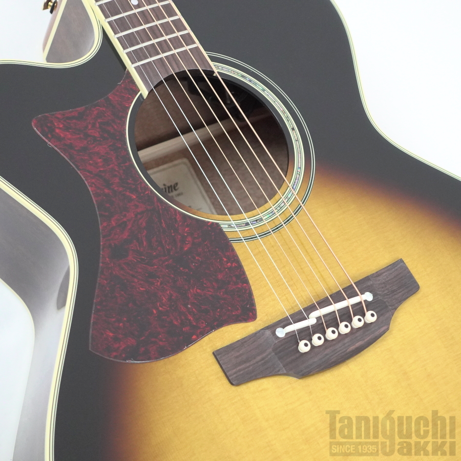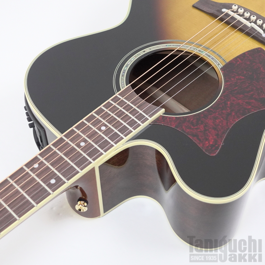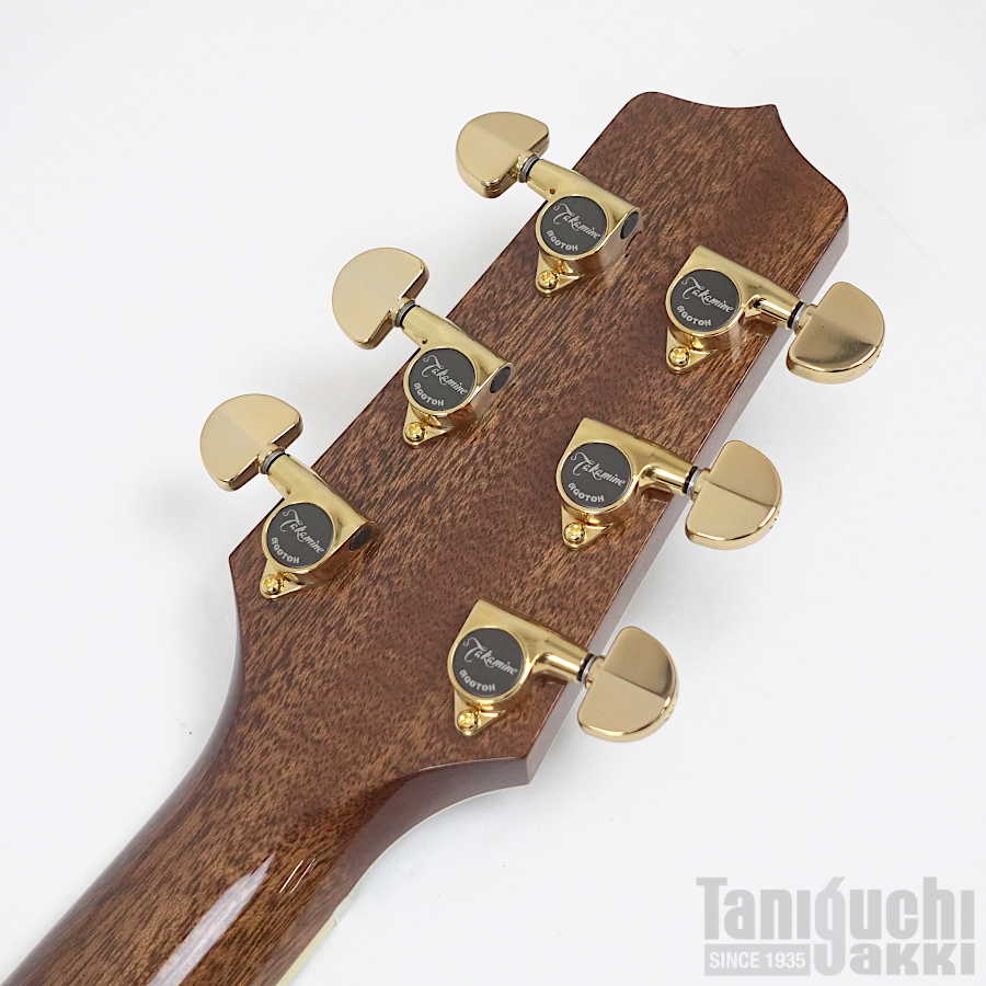 ボディ材はスプルース(トップ)、サペリ(サイド&バック)を使用。プレーン弦(1・2弦)とワウンド弦(3~6弦)でサドルをセパレートした独自のダブルサドル、1ユニット・プリアンプ、各弦を分離させることでバランスの取れたサウンドを生み出すパラスティック・ピックアップなど、タカミネの“エレアコ”を世界的に有名にした独自設計も標準採用しています。