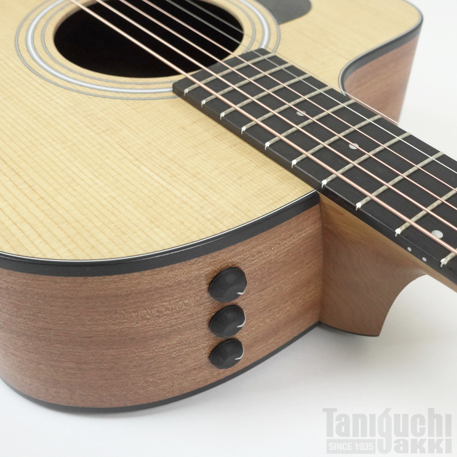 ヴォリューム、トレブル、ベースのコントロール・ノブは、木部の加工を最小限に止めたマウント方法が採られており、100・200シリーズをはじめ、USA製エレクトリック・アコースティック全モデルに搭載されています。