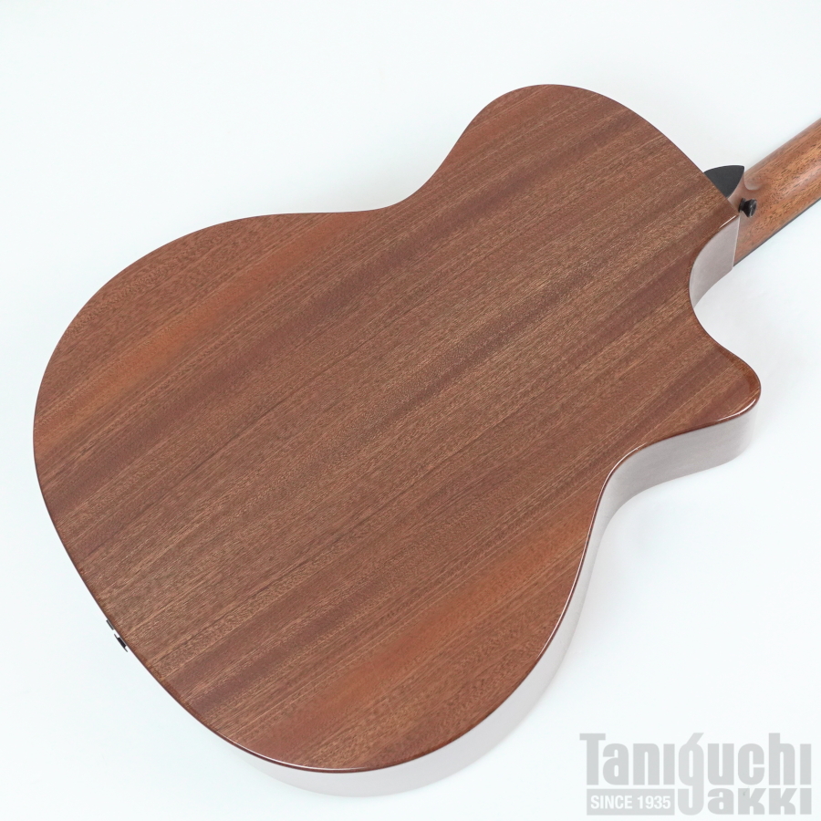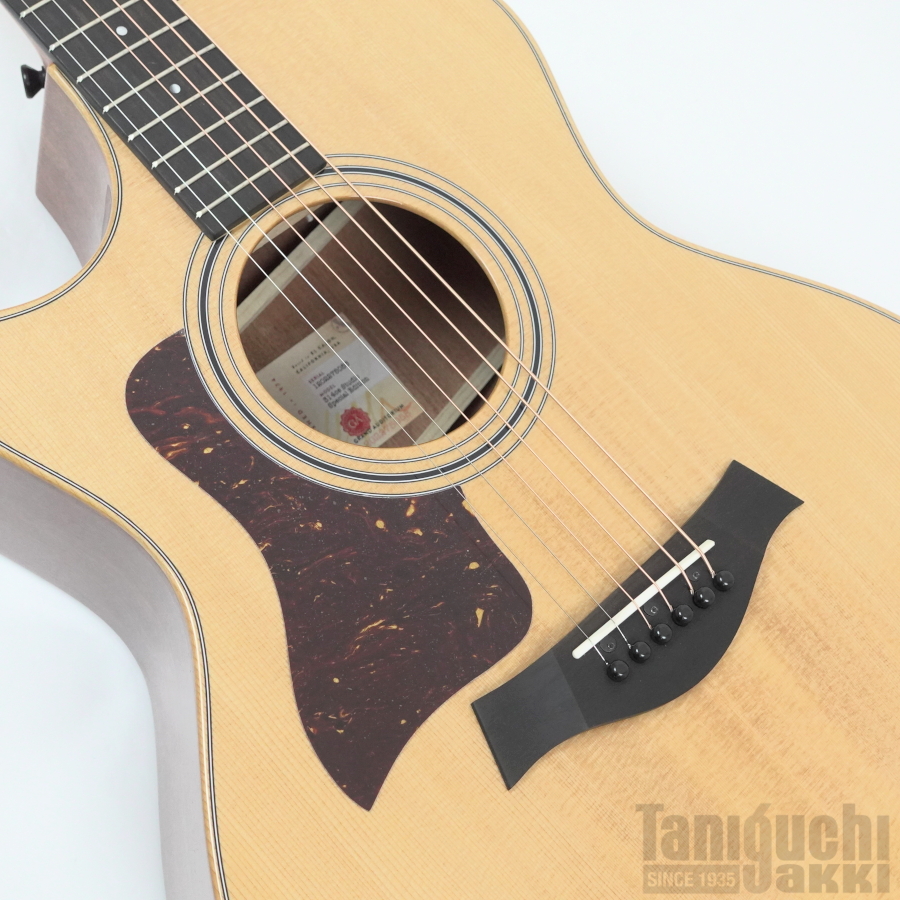 トップは熱処理による独自の木材乾燥を施したトレファクション・スプルース、サイド&バックはサペリを使用したオール単板ボディ。ネック材はマホガニー。ナット幅は100および200シリーズ同様の42.8mm。通常の314ceよりも約2mm狭い設計となっており、エレキギター奏者にも親しみやすいスレンダーなネック・シェイプが特徴です。
