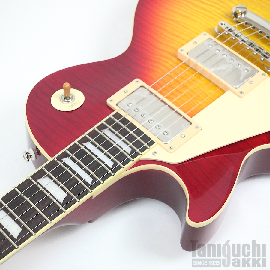 メイプル・トップ、マホガニー・バック、マホガニー・ネックを基本スペックとしつつ、18度のヘッドアングル、300Rの指板ラディアスを採用。ボディとネックの接合には伝統的な接着剤(ニカワ)を使用し、緻密なネック・ジョイント部の処理は時間を掛けて微調整を繰り返し、弦振動を的確に伝達するスイートスポットでセット。