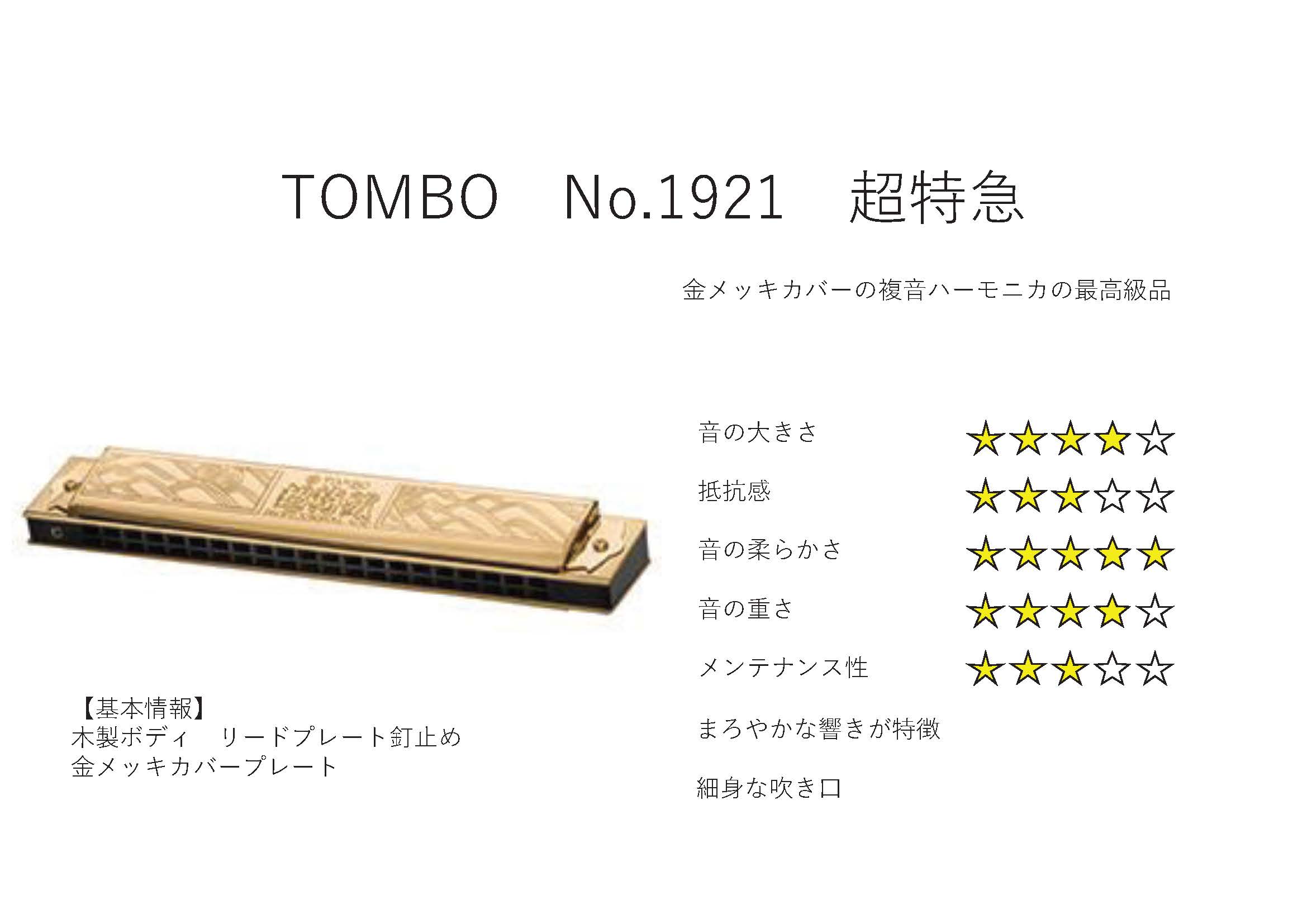 TOMBO No.1921S “超特急 Iwasaki Solo” 岩崎重昭氏監修。 専門家用最高級複音ハーモニカです。