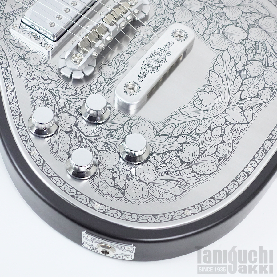 1970年代のロックミュージックに求められるサウンドを内包したメタル・フロントは、その後、彫金師のダニー・オブライエンの手によってエングレイブが施されることで芸術の域にまで高められることとなりました。その美しいルックスと独特のサウンドは、トニーが製作を手掛けたギターの中でも特に印象的なモデルのひとつと云えます。
